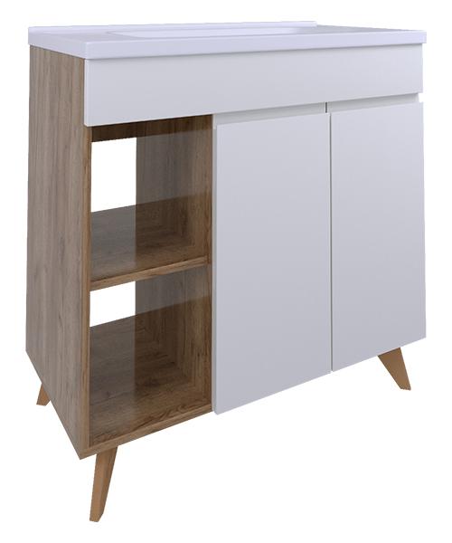 Коллекция «Агата» – это беспроигрышное сочетание цвета, текстуры и эргономики. Деревянная текстура каркаса с золотистым оттенком дуба – одно из самых востребованных решений у дизайнеров. А в сочетании с фасадами в белой эмали и интегрированными ручками под захват эта коллекция стала бестселлером, который выбирают для своей ванной комнаты ценители стиля и комфорта.