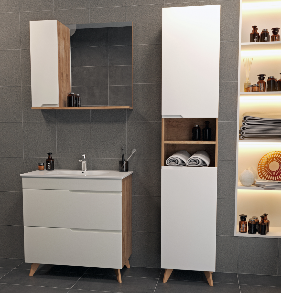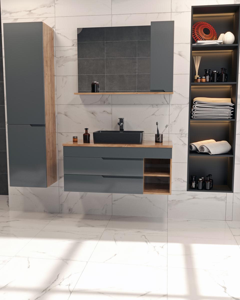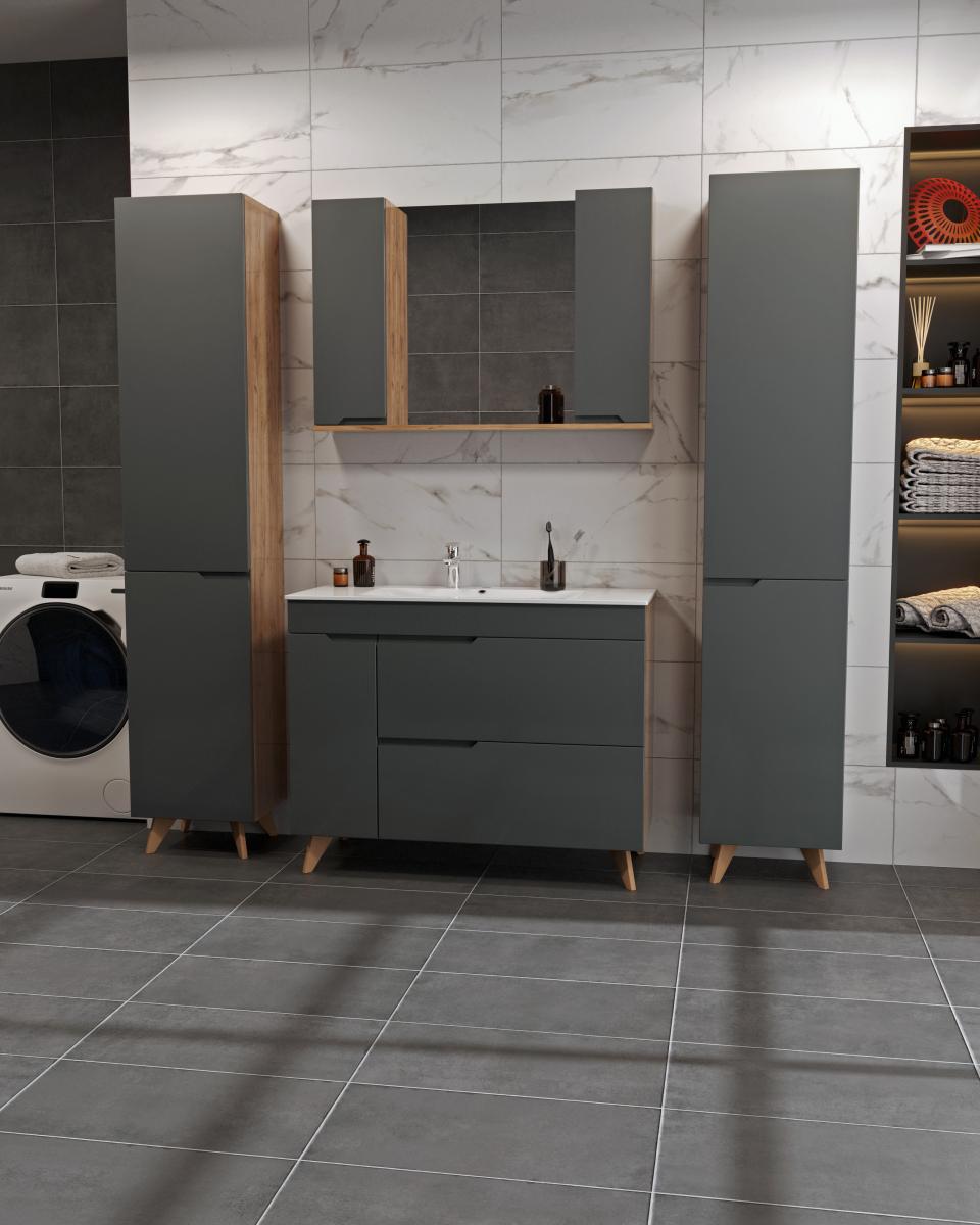 Коллекция «Ингрид» создана для тех, кто ценит эстетику и функциональность мебели. Дерево в сочетании с графитом образуют богатую цветовую композицию, которая задает тон интерьеру всей ванной комнаты. Скрытая система открывания под захват прекрасно дополняет дизайн коллекции, создавая ее эргономику.