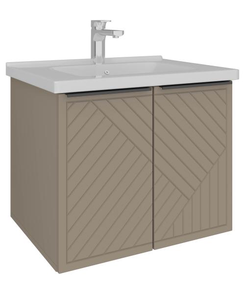 Коллекция «Джина 2.0» сочетает в себе современную эстетику и функциональность. Фасады украшены изящной фрезеровкой в виде наклонных линий, заполняющая большую часть поверхности, создавая выразительный рельеф. Эффект дополнительно подчёркивается элегантной рамкой, придающей дизайну утончённость и завершённость. Торцевая ручка, встроенная в конструкцию, обеспечивает удобство использования, сохраняя при этом чистоту линий и лаконичность формы. «Джина 2.0» станет ярким акцентом ванной комнаты, подчёркивая вкус и индивидуальность её владельца